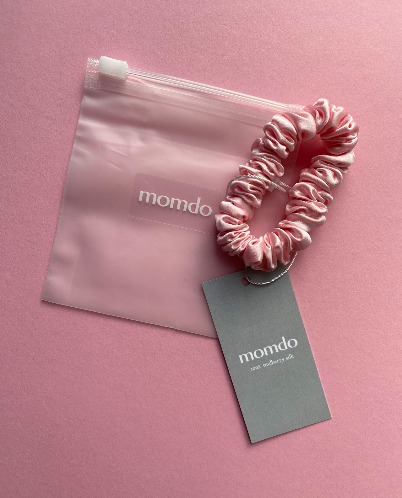 Резинку для волосся з шовку можна доповнити іншими аксесуарами Momdo: рушником і шовковою маскою для сну.
